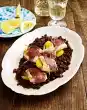 Mix the cream firmer, vanillin sugar and 25 g sugar. Whip the cream until stiff and allow the sugar mixture to trickle in. Stir in sherry. Pour the sherry cream into a piping bag with a star-shaped spout. Cut the second puff pastry sheet in half, place it on the pudding cream and press it down lightly. Spray sherry cream as tuffs on the puff pastry. Keep the slices cold until serving, dust with cocoa and cinnamon