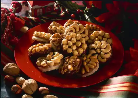 Cut out round cookies (approx. 5 cm Ø). Place the cookies on a baking tray lined with baking paper. Bake in a preheated oven (electric cooker: 200 °C/ gas: level 3) for 12-15 minutes. Let them cool down on a cake rack. For topping, slightly heat up the jam and spread on the cookies. Cover with the different types of nuts in different ways. For the caramel, melt the sugar in a wide pan over medium heat until light brown. Deglaze with 100 ml hot water and boil while stirring until a smooth mixture is formed. Spread the caramel evenly over the nut thalers with a teaspoon and let it set. Melt dark and white chocolate separately in a water bath. Dip half of the nutcrackers with the shortcrust pastry base into the dark couverture. Dip the rest of the biscuits into the white couverture.