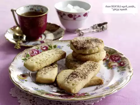 Beat the butter and 4 tablespoons of sugar until creamy with the whisk of the hand mixer. Sift the flour over the mixture, add salt and knead with the dough hooks of the hand mixer. Roll out the dough on a lightly floured work surface to a thickness of about 1 cm. Cut dough into "fingers" or cake pieces or cut out circles. Place shortbreads on a board and chill for about 30 minutes.