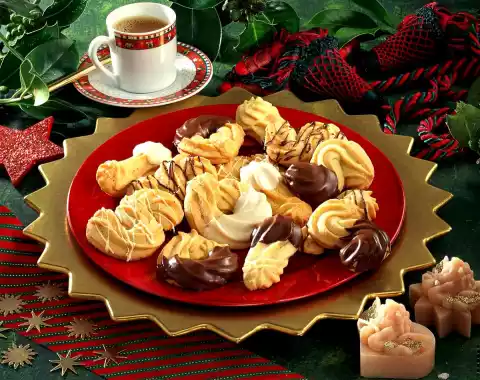 Bake in a preheated oven (electric: 200 °C/ gas: level: 3) for approx. 10 minutes. Dissolve the chocolate coating in a warm water bath. Decorate cooled cookies with it. Results in approx. 50 pieces