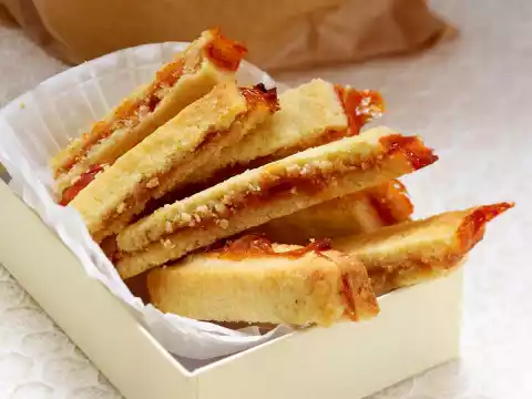 Bake in a hot oven for 20-25 minutes. Take out and cut into approx. 60 strips (approx. 1 x 6 cm) while still hot. Leave to cool completely on the tray.