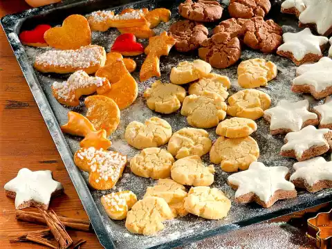 Roll out the dough on a floured work surface and cut out cookies. Place the cookies on a baking tray lined with baking paper.