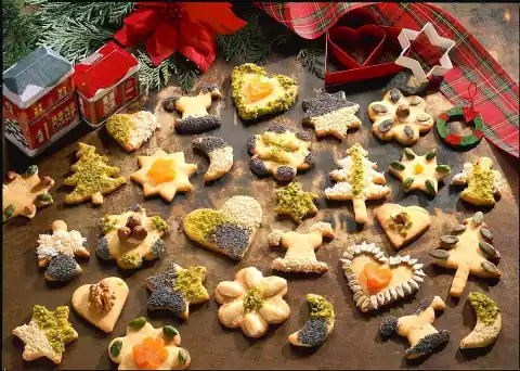 For the shortcrust pastry, place all the ingredients in a bowl and knead into a smooth dough using the dough hooks of the hand mixer. Wrap dough in foil and chill for 1 hour. Then roll out the dough on a floured work surface to a thickness of approx. 1/2 cm and cut out various cookie shapes. Place the cookies on a baking tray lined with baking paper. Bake in a preheated oven (electric: 200 °C/ gas: level 3) for 12-15 minutes. Let the cookies cool down on a cake rack. Stir icing sugar with lemon juice and 1 tablespoon of hot water until smooth. Coat the cookies with the icing and decorate with the various nuts and seeds. Results in about 50 cookies