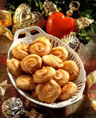 Squeeze 2 tablespoons of juice from the orange. Stir the remaining icing sugar with it until smooth. Spread the icing thinly on the cookies and sprinkle with orange julienne. Leave to dry.