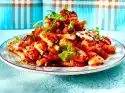 Clean, wash and cut the spring onions into rings. Drain tuna and tear up. Grate cheese finely. Stir onions, fish and cheese into the sauce. Heat again and season to taste with salt, pepper and chili flakes.