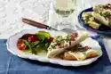 Put all the ingredients with the flour and egg in a bowl and mix to a soft mass. Season with about 1/2 teaspoon salt, about 1/2 teaspoon pepper and 1 teaspoon coriander.