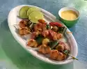 Mix salad cream, yoghurt, ketchup, brandy and shallot. Season the sauce with salt, pepper and sugar. Carefully mix vegetables and shrimps, distribute in 4 glasses. Pour sauce over them. Garnish with chervil