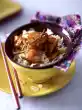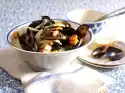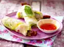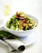 Wash and clean the tomatoes and spring onions. Halve the tomatoes and cut the spring onions into rings. Halve avocado, remove stone. Remove the flesh from the skin and cut crosswise into slices, sprinkle with lemon juice. Drain shrimps on a sieve. For the sauce, peel and finely dice the shallot.