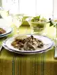 Tearing bread. Toast in hot butter, take out. Pour vegetables into an ovenproof dish, place medallions on top. Sprinkle with bread crumbs and parmesan. Gratinate in a preheated oven (electric cooker: 225 °C/circulating air: 200 °C/gas: level 4) for 10-15 minutes.