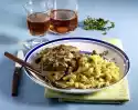 Add butter, melt. One go. Dust with flour and sweat. Wine, 1⁄4 l Stir in water, stock and cream. Bring to the boil, add thyme. Simmer sauce for about 5 minutes.