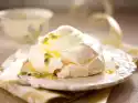 In the meantime, beat the egg whites with the whisks of the hand mixer until stiff. Slowly pour in 50 g sugar. Fold the grated coconut into the beaten egg white. Pour the macaroon mixture into a piping bag with a medium perforated spout. Pour a macaroon tuff in the middle of each of the still hot tartlets. Bake in the preheated oven (electric cooker: 150 °C/ convection oven: 125 °C/ gas: see manufacturer) for approx. 10 minutes, remove from oven and let cool off. Carefully remove the tartelettes from the tartlets
