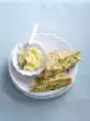 Cut salmon into strips. Clean and wash spring onions and cut into fine rings. Stir cream cheese with mustard until smooth. Mix in salmon and spring onions, season with pepper. Remove the pizza dough from the packaging and roll out. Cut 6 circles (each 12 cm Ø) out of each dough sheet using the dough pocket cutter. Place each circle of dough on the flour-dusted dough pocket former. Put some filling on one side, fold the mould and press it firmly together. Results in approx. 10 Asia pockets and approx. 8 salmon pockets. Divide the dumplings between 3 baking trays lined with baking paper