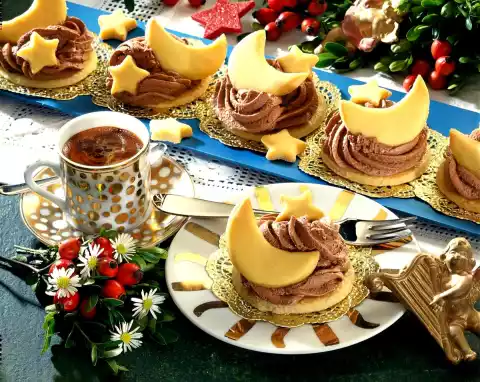 Before serving, decorate with a crescent moon and star. Makes 12 cupcakes.