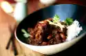 Cover and cook the frozen beans in boiling salted water for about 12 minutes. Peel onion and garlic, dice finely. Wash and finely dice the tomatoes.