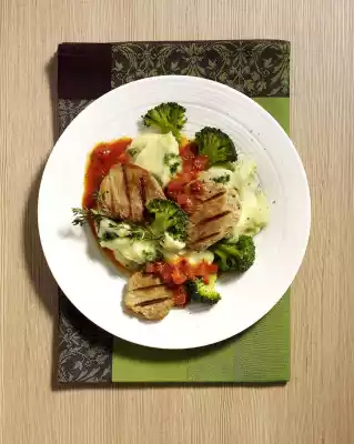 Wash the fillet and pat dry. Cut into slices of about 1 cm and tap flatter. Put milk and puree thaler in a pot, warm up for about 8 minutes at medium heat while stirring constantly. Put the broccoli florets unfrozen in 125 ml boiling water. Bring to the boil covered and cook for about 3 minutes. Pour off the liquid, fold half the broccoli into the puree.