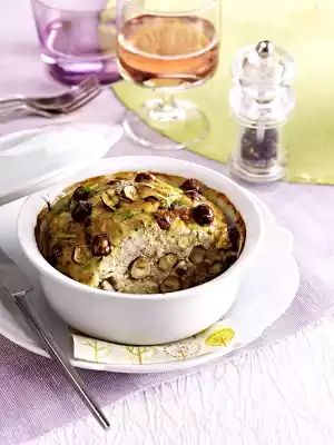 Drain the meat the next day. Remove spices and leek. Wash parsley, shake dry and chop finely. Mix meat, onions, garlic and parsley in portions in the universal chopper. Season with salt and pepper. Stir in hazelnuts. Pour the mixture into 3 ovenproof moulds (each 12 cm Ø). Place the moulds on the fat pan of the oven and put them in the oven (electric cooker: 175 °C/ circulating air: 150 °C/ gas: see manufacturer). Fill the fat pan with water. Cook the pies for 30-40 minutes. Remove from the oven. Leave to cool for about 4 hours and chill for at least 24 hours