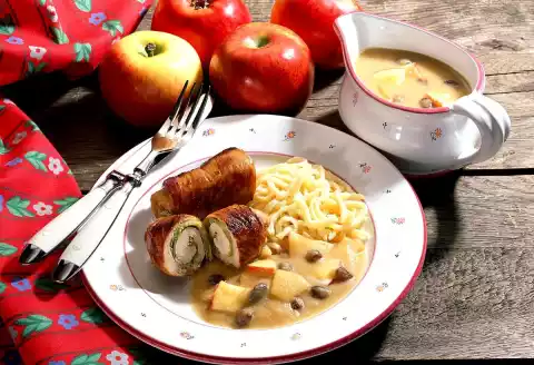 Season to taste with salt and pepper. Serve the roulades with the apple-raisin sauce. Spätzle taste good with it.