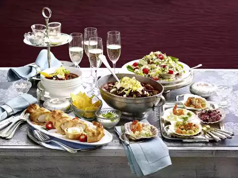 For the vinaigrette, mix vinegar, mustard and maple syrup. Season with salt and pepper. Stir in dill. Fold in the oil. Mix celery, salmon and trout carefully. Pour over vinaigrette, mix carefully. Arrange in serving bowls