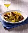 For the compote, wash and clean the gooseberries. Boil up apple juice with 3 tbsp. sugar, add gooseberries and simmer for about 2 minutes. Stir starch with a little water until smooth. Stir into the boiling liquid and let it simmer for about 1 minute while stirring. Let it cool down