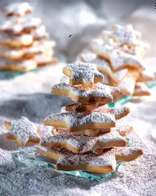 Bake in the preheated oven (electric cooker: 175 °C/ gas: level 2) for 10-14 minutes. Prick small holes in the middle of the still hot stars. Leave to cool. Put 5 stars of different sizes with 3 very small stars in between on wooden skewers. Dust with icing sugar