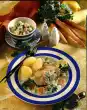 Cook the rice in boiling salted water for about 10 minutes. Clean and wash the celery and cut it into bite-sized pieces. Chop some celery leaves finely and put aside. Cook celery in boiling salted water for about 8 minutes, drain.