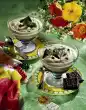 Pour tea through a sieve and collect it. Squeeze 3-5 oranges and measure 300 ml. Mix with jam sugar in a pot. Add orange zests and bring the fruit mass to the boil while stirring. Simmer for 4 minutes. Fill orange marmalade hot into prepared glasses and close them immediately. For the waffles, stir butter, sugar, vanillin sugar and salt until creamy. Stir in eggs one after the other. Mix flour and baking powder, alternately stir in 150 g of sour cream. Preheat the waffle iron and lightly grease it.