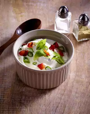Drain the peppers well in a sieve and dice them roughly. Clean and wash spring onions and cut them into fine rings. Wash and roughly chop the basil.