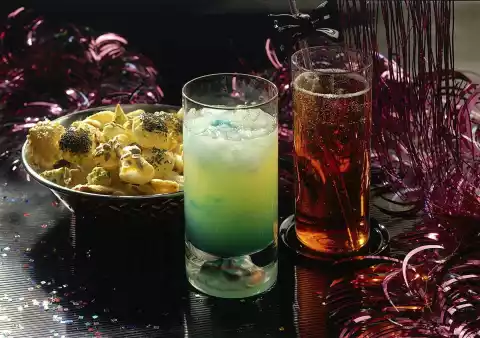 Put ice in a glass. Add rum and pineapple juice. Finally add Blue Curaçao. Serve immediately. Stir only then.