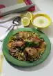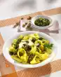 Cook the spaetzle in boiling salted water for about 10 minutes. Clean and wash peppers, leek and mushrooms. Cut mushrooms into slices, leek into rings and peppers into strips. Wash meat if necessary, dab dry and cut into cubes. Wash and chop the herbs.