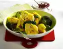 Pluck off leaves and chop finely, except for a few leaves for garnishing. Peel ginger and grate finely. Add tomatoes and ginger to the sauce. Chop the tomatoes with a spatula, bring to the boil and simmer for 4-5 minutes.