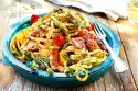 Cook the pasta in boiling salted water according to the instructions on the packet. Mix peanut cream, 3 tbsp. soy sauce, Sriracha, lime juice and approx. 200 ml noodle boiling water in a high mixing bowl with a hand blender. Season to taste with salt and brown sugar.