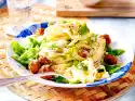 Drain the pasta, mix immediately with vegetables and peanut sauce and serve. Place the fried eggs on top, sprinkle with chili flakes and peanuts.