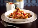 Clean and wash the peppers, also dice them finely. Wash the tomatoes and cut them into slices. Leave bacon in a pan until crispy. Add tomatoes and paprika. Fill up with tomato juice. Cook for ten minutes at high heat.