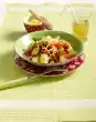 Cook the spaghetti in plenty of boiling salted water for about 10 minutes until al dente. Peel garlic and cut into thin slices. Clean and wash rocket salad (pluck parsley)