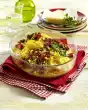 Meanwhile, prepare the pasta in boiling salted water according to the instructions on the packet. Fry bacon in a pan without fat until crispy. Add peas and diced onion to the bacon in the pan and fry for another 5 minutes. Season with salt and pepper. Take off 100 ml pasta cooking water and add to the peas