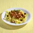 Put some aside for garnishing. Grind the garlic, basil and pine nuts in the universal chopper or crush them finely in a mortar. Grate 60 g Parmesan and mix with the herb paste. Stir in the oil to make a thick sauce.
