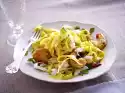 Wash the zucchini, dab dry and cut into fine slices. After 10 minutes cooking time add to the tomato sauce. Season the sauce with salt and pepper. Wash the basil, dab dry and chop finely except for something to garnish and add to the tomato sauce.