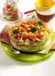 Put spaghetti in plenty of boiling salted water and cook for about 10 minutes until al dente. Pour off, rinse and drain. Clean and wash spring onions and slice them diagonally.