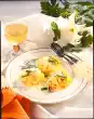 Heat the remaining oil in a small pot, fry the remaining onions until translucent, dust with curry and sauté briefly. Add the second third of the basic sauce, bring to the boil briefly and keep warm. Add the shrimps before serving.