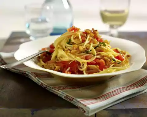 Cook spaghetti in 3-4 l boiling salted water (approx. 1 teaspoon salt per litre) according to package instructions.