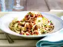 Season with salt and sugar and bring to the boil. Wash the chilli pepper, cut lengthwise and remove the seeds. Cut the pod into fine rings. Drain olives and cut into rings. Wash parsley, dab dry, pluck leaves from the stalks and cut into strips.