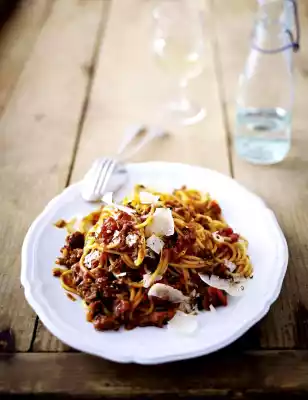 Prepare the pasta in boiling salted water according to the instructions on the packet. Whip cream until semi-solid. Slice the parmesan into shavings. Arrange pasta and sauce. Add cream and parmesan according to taste