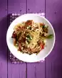 Cook the pasta in boiling salted water for about 8 minutes. In the meantime clean and wash the beans and cook them in boiling salted water for about 7 minutes. Then drain them. Peel shallots and garlic.