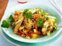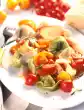 Cook the spaghettini in boiling salted water for about 8 minutes. Clean, wash and cut the spinach into strips and blanch in boiling salted water for about 2 minutes. Wash, quarter, seed and dice the tomatoes.