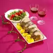 Fry the salmon and prawns for about 4 minutes, season with salt and pepper. Remove salmon and prawns and keep warm. Pour fish stock and prosecco into the frying fat and bring to the boil. Stir in lobster paste.