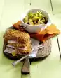 Peel and finely chop the onion, ginger and garlic cloves. Mix with orange juice, honey, oil, ketchup, Worcestershire sauce and soy sauce. Wash the meat, dab dry and cut into pieces (each with approx. 4 bones). Place the meat and marinade in a large bowl and mix well. Marinate for about 1 hour, turning several times
