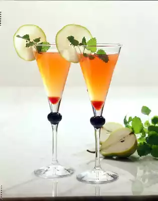 Put some grenadine in a tall champagne glass. Add vodka, pear brandy and pear juice. Stir and fill up with iced champagne. Put the pear slice on the edge of the glass and garnish with lemon balm.