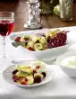 Quickly mix the ingredients in a mixer. In 2 bowls