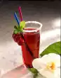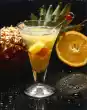 Mix cherry liqueur, rum and pineapple juice, pour into a champagne glass and top up with well chilled champagne. Put the cocktail cherries and pineapple pieces on a skewer and pour into the glass. Decorate with lemon balm