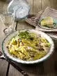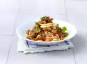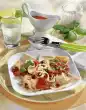 Drain the spaetzle. Heat the oil in a very large (preferably ovenproof) pan. Brown the meat in it while turning. Season and remove. Fry the vegetables in the frying fat for about 5 minutes. Deglaze with 1/4 l water and cream, bring to the boil. Stir in stock and sauce thickener, season to taste. Add spaetzle, meat and herbs